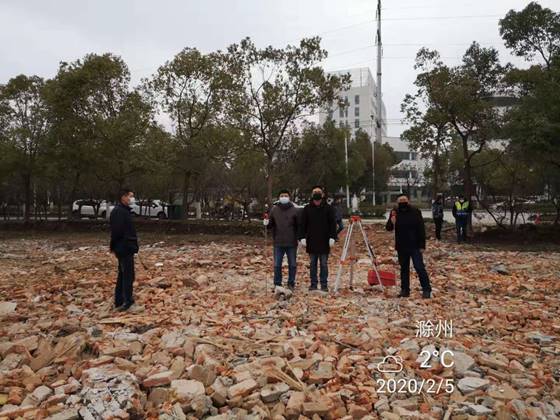 2月3日,我院再次接到市重點工程管理處的緊急任務(wù),由我院測量隊承擔(dān)市新型冠狀病毒肺炎定點收治備用醫(yī)院三期場地的地形圖及土方測繪工作。疫情就是命令,測量隊隊員們聞令而動,紛紛請戰(zhàn)。由副隊長蔣蔚、主任工程師梁發(fā)軍帶領(lǐng)5名隊員,帶著測繪工具,不顧場地泥濘,于2月4日上午八點半準(zhǔn)時到達(dá)現(xiàn)場,立即開展工作,并于當(dāng)日完成了測量數(shù)據(jù)采集、傳輸、整理和制圖工作,為備用醫(yī)院三期建設(shè)提供了詳實的第一手基礎(chǔ)資料。