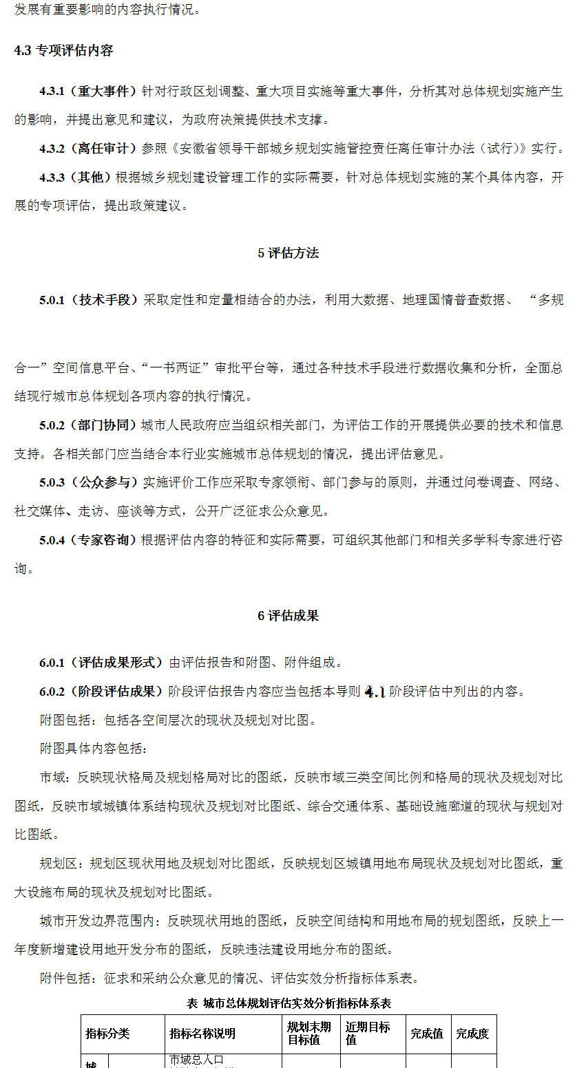 《安徽省城市總體規(guī)劃實(shí)施評(píng)估技術(shù)導(dǎo)則》