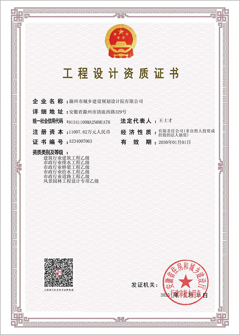 工程設(shè)計(jì)資質(zhì)證書(建筑、排水、橋梁、給水、道路、風(fēng)景園林)