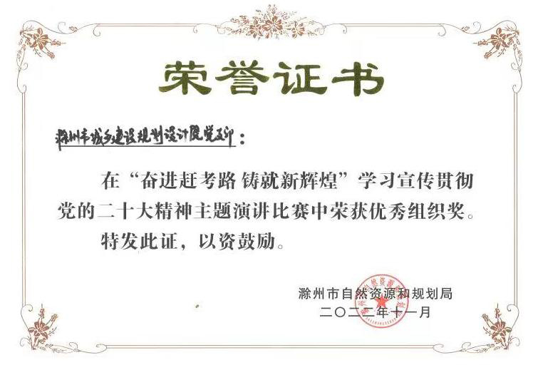 2022.11學(xué)習(xí)宣傳貫徹黨的二十大精神主題演講獲優(yōu)秀組織獎(jiǎng)